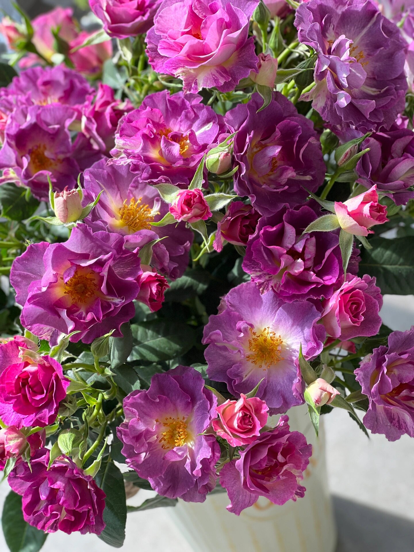 It is a typical blooming rose, with a large number of flowers and a multi-headed cluster blooming form. There is a bunch of buds on one flower branch.