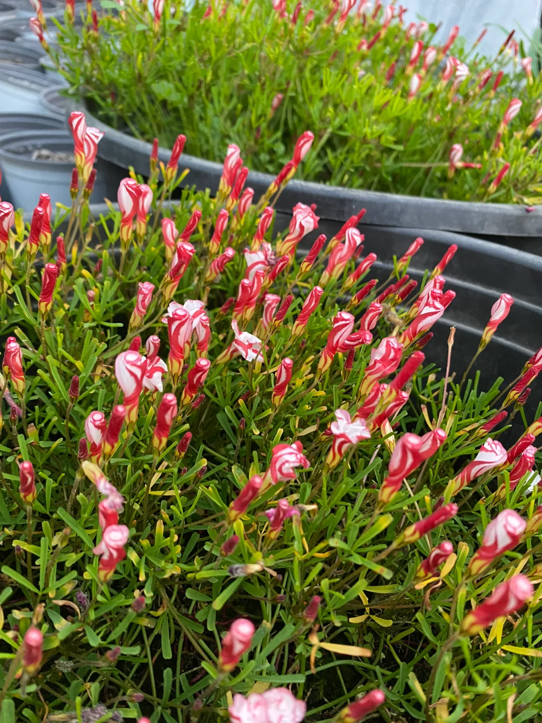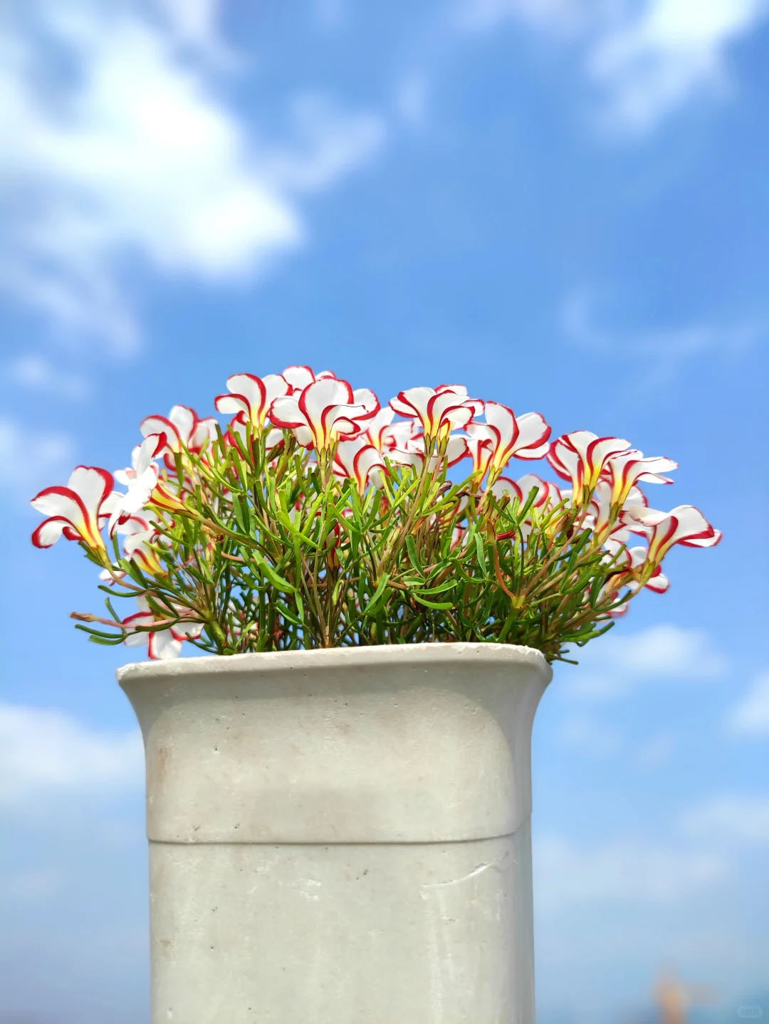 The leaves of the Oxalis versicolor - Candy Cane Sorrel are as green as jade and soft to the touch,seeming to soothe your tiredness.And its flowers are even more beautiful, with pink and white intertwined,as sweet as ice cream,making people want to get closer and admire them.Each flower is like a work of art carefully carved by nature, adding a touch of brightness to your living space.